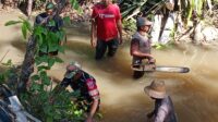 Arus Sungai Kembali Lancar, Babinsa dan Warga Tabu Darat Gerak Cepat Atasi Pohon Tumbang
