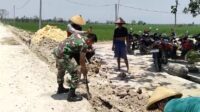 Giatkan Budaya Gotong Royong, Babinsa Kasreman Kerja Bakti Bersama Warga Cangakan