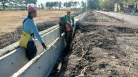 Wujudkan Kemanunggalan TNI dengan Rakyat, Babinsa Pos Koramil Gerih Bersama Warga Kerja Bakti Bangun Talud Jalan