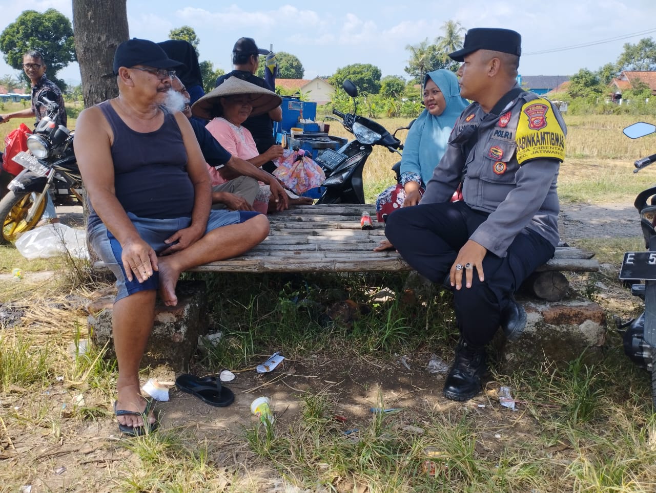 Tampak Akrab, Bhabinkamtibmas Polsek Jatiwangi Ngobrol Santai Dengan Warga