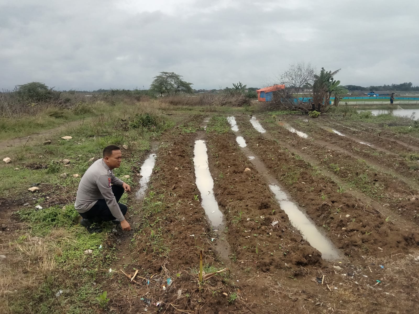 Indramayu – BRIPKA Edi H., Bhabinkamtibmas Polsek Sukra Polres Indramayu Polda Jabar, monitoring lahan jagung milik warga berukuran yang baru berusia 8 hari tanam.