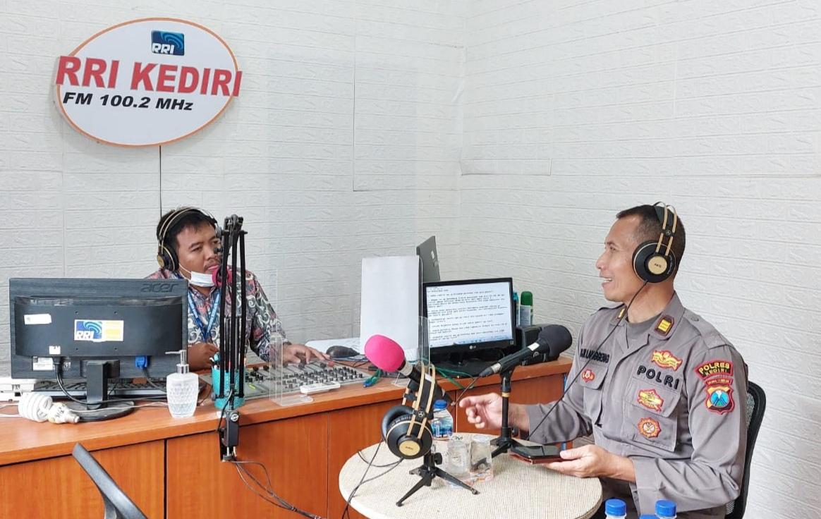 Mengudara di saluran RRI (radio republik Indonesia) Kediri dan radio Panjalu FM Kediri dengan waktu yang hampir bersamaan, Kasi Humas menyampaikan imbauan-imbauan dengan lugas, Kamis (2/2/2023).