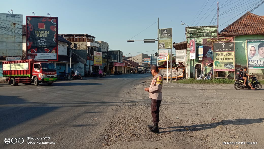 Majalengka – Personil Polsek Jatiwangi Polres Majalengka melaksanakan gatur Lalin sore dalam rangka mencegah terjadinya kecelakaan lalu lintas serta kemacetan di Simpang Empat Jatiwangi, Kamis (20/07/2023).