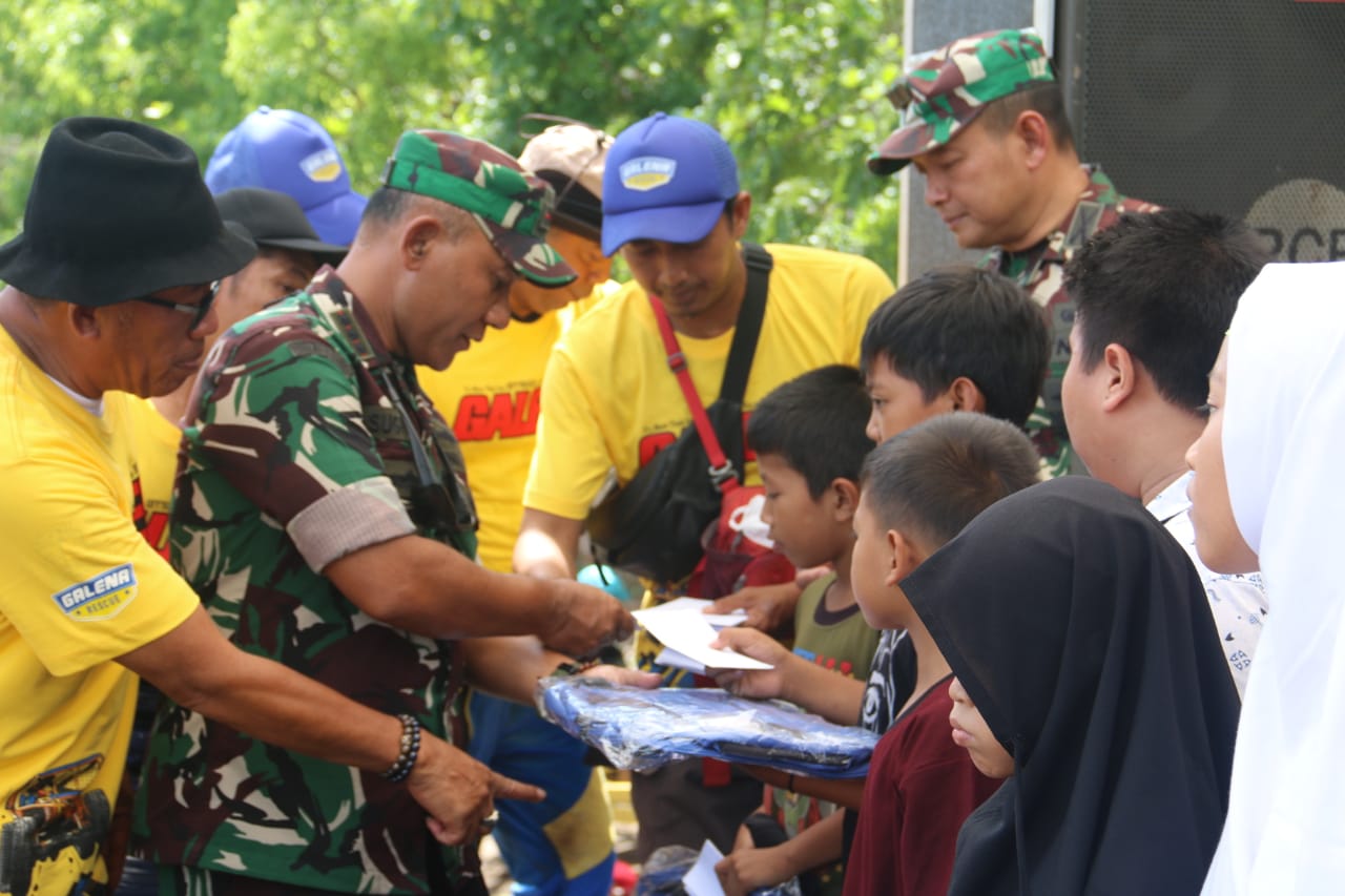 Tampak dalam kesempatan itu, Danrem juga ditunjuk untuk memberikan bantuan secara simbolis kepada anak-anak yatim dan warga kurang mampu di sekitar Gunung Kendil. Total ada 200 paket sembako dan 94 santunan untuk anak yatim.