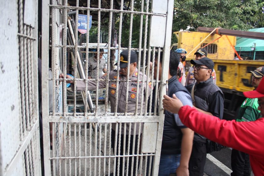 Saat penggerebekan petugas terpaksa memanjat ruko berlantai dua tersebut, untuk masuk kedalam gudang, setelah pegawai gudang menggembok gerbang dengan rantai.