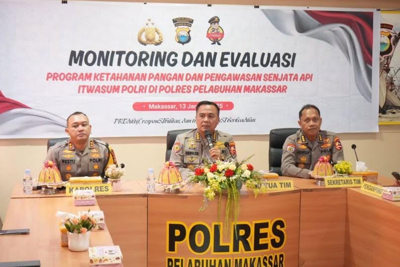 Makasar — Tim Monitoring dan Evaluasi (Monev) Ketahanan Pangan dan Pengawasan Senjata Api (Senpi) dari Itwasum Polri melakukan kunjungan kerja di Polres Pelabuhan Makassar