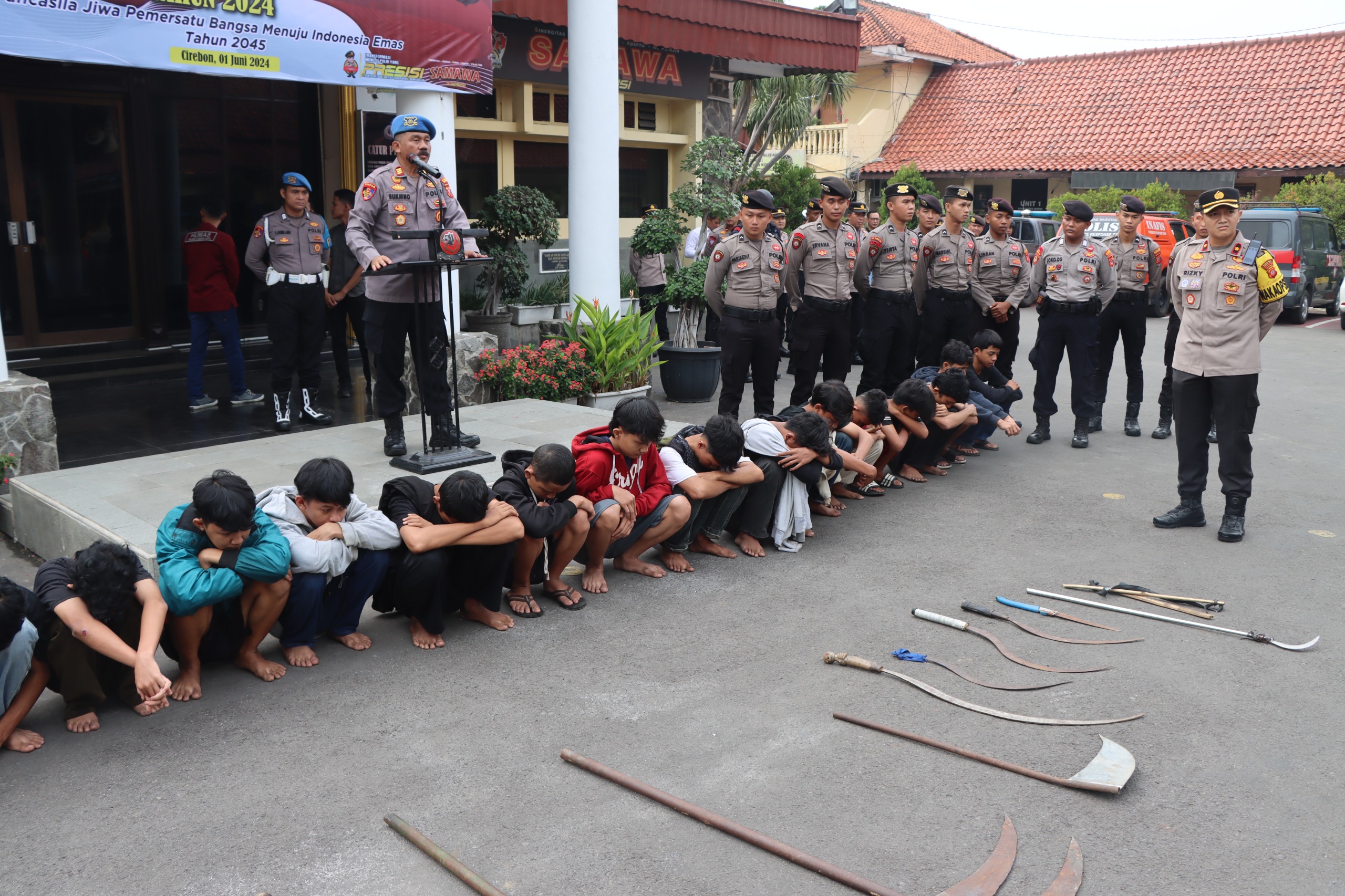 POLRES CIREBON KOTA,-Kepolisian Resor (Polres) Cirebon Kota berhasil mengamankan belasan pelaku tawuran konten di dua lokasi berbeda di wilayah Kota Cirebon pada Minggu (2/6/2024).