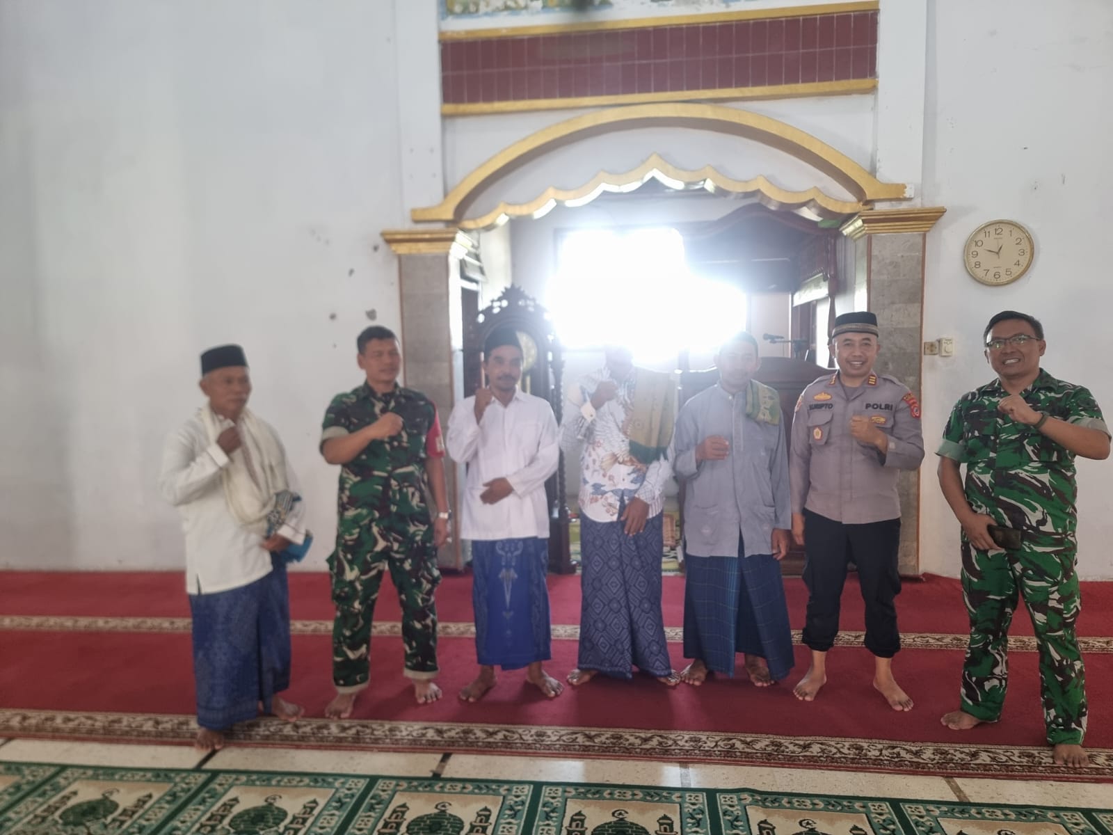 INDRAMAYU – Kapolsek Sukagumiwang, Polres Indramayu, Polda Jabar, AKP Suripto, S.H bersama Kasdim 0616 Indramayu dan Danramil 0616-5 Sukagumiwang, Lettu CBA Icuk S., melaksanakan Sholat Ashar berjamaah di Masjid Nurul Iman, Desa Cadangpinggan, Kecamatan Sukagumiwang, Kabupaten Indramayu, Kamis (18/9/2025).