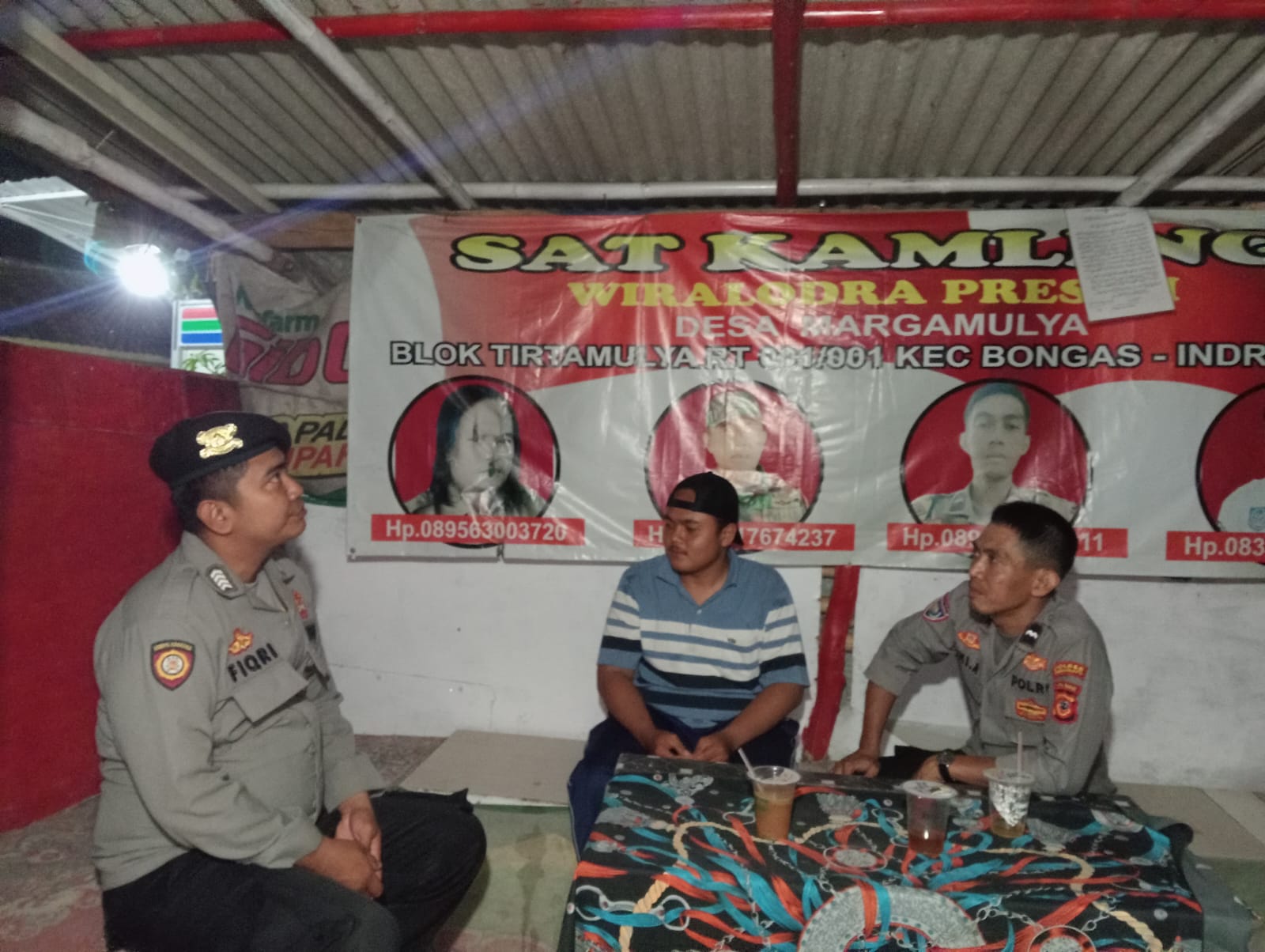 Indramayu, – Personel dari Polsek Bongas jajaran Polres Indramayu Polda Jabar melaksanakan kegiatan pengecekan Pos Satuan Keamanan Lingkungan (Satkamling) Wiralodra Presisi dalam upaya meningkatkan keamanan dan ketertiban di lingkungan sekitar.