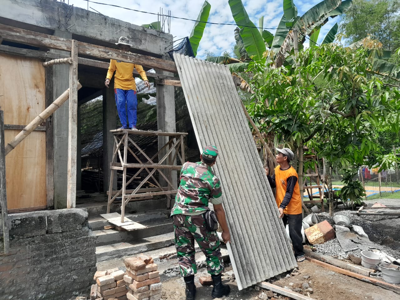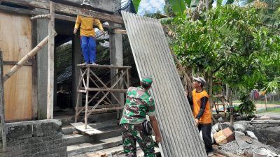 Madiun – Rasa Solidaritas terhadap warga binaan yang sangat membutuhkan tenaga, Babinsa Koramil Tipe B 0803/02 Madiun Sertu Jainal Kodim 0803/Madiun dengan ikhlas dan tulus membantu warga masyarakat pemasangan asbes di rumah milik Bapak Sutikno ,Desa Tulungrejo ,RT 07, RW 02, kecamatan Madiun, kabupaten Madiun, Selasa (3/10/2022).