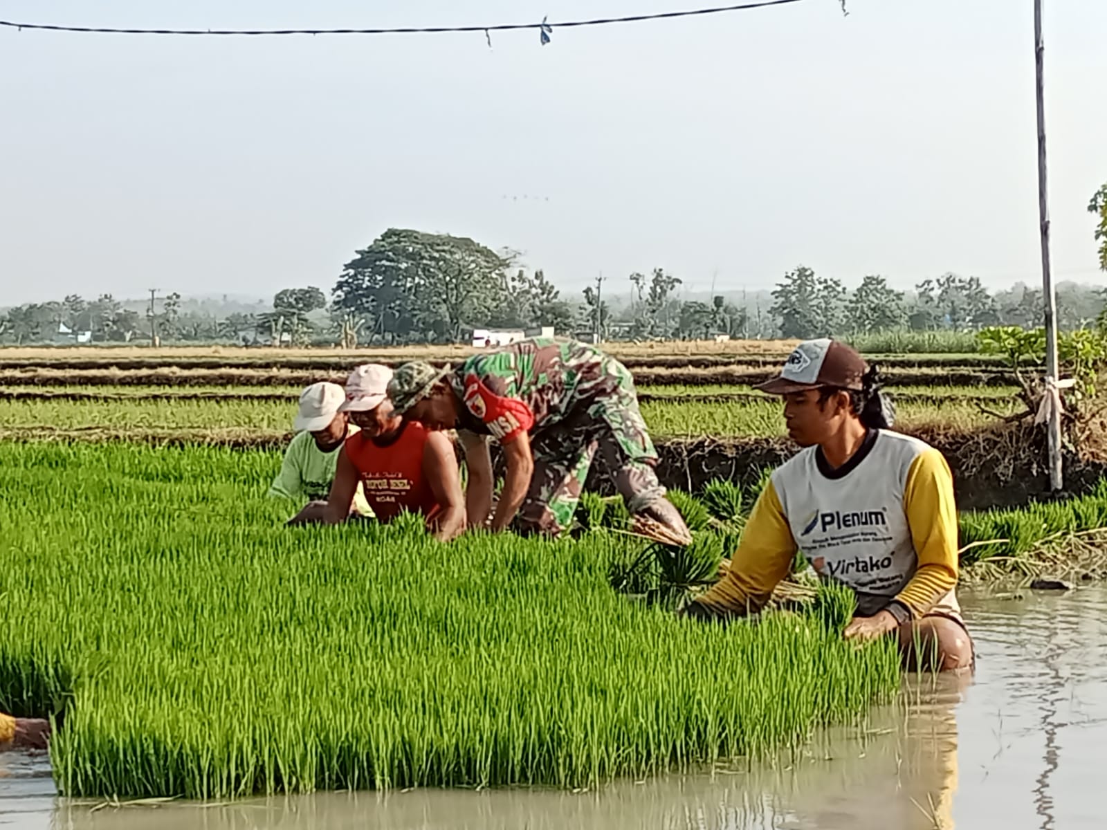 “Ini sudah merupakan tugas kami sebagai aparatur kewilayahan membantu para petani dalam hal pertanian, seperti kegiatan tanam padi yang sedang saya kerjakan merupakan wujud kemanunggalan TNI- Rakyat,” ujarnya.