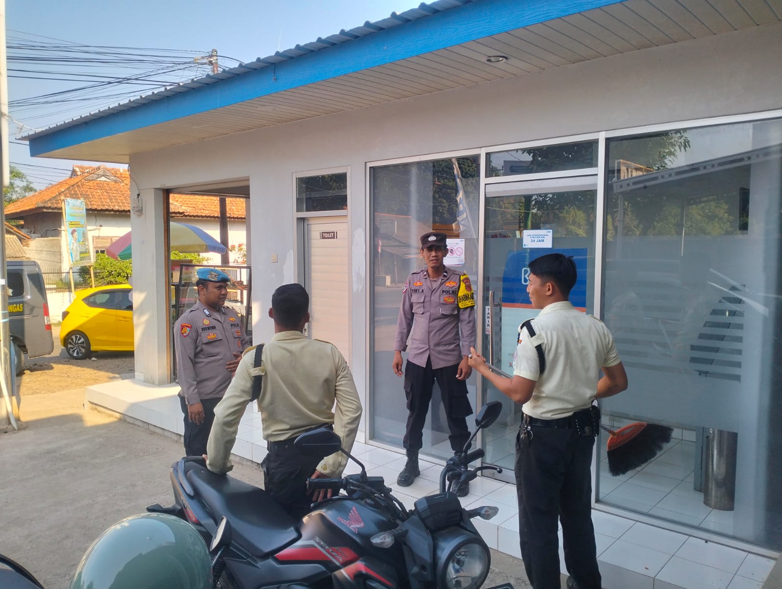 Indramayu – Untuk mengetahui situasi wilayah, patroli Polsek Bongas jajaran Polres Indramayu Polda Jabar melaksanakan patroli rutin serta menyambangi sejumlah objek vital di antaranya sektor perbankan yang ada di Kec. Bongas, salah satunya Bank BRI, Jum’at (20/9/2024).