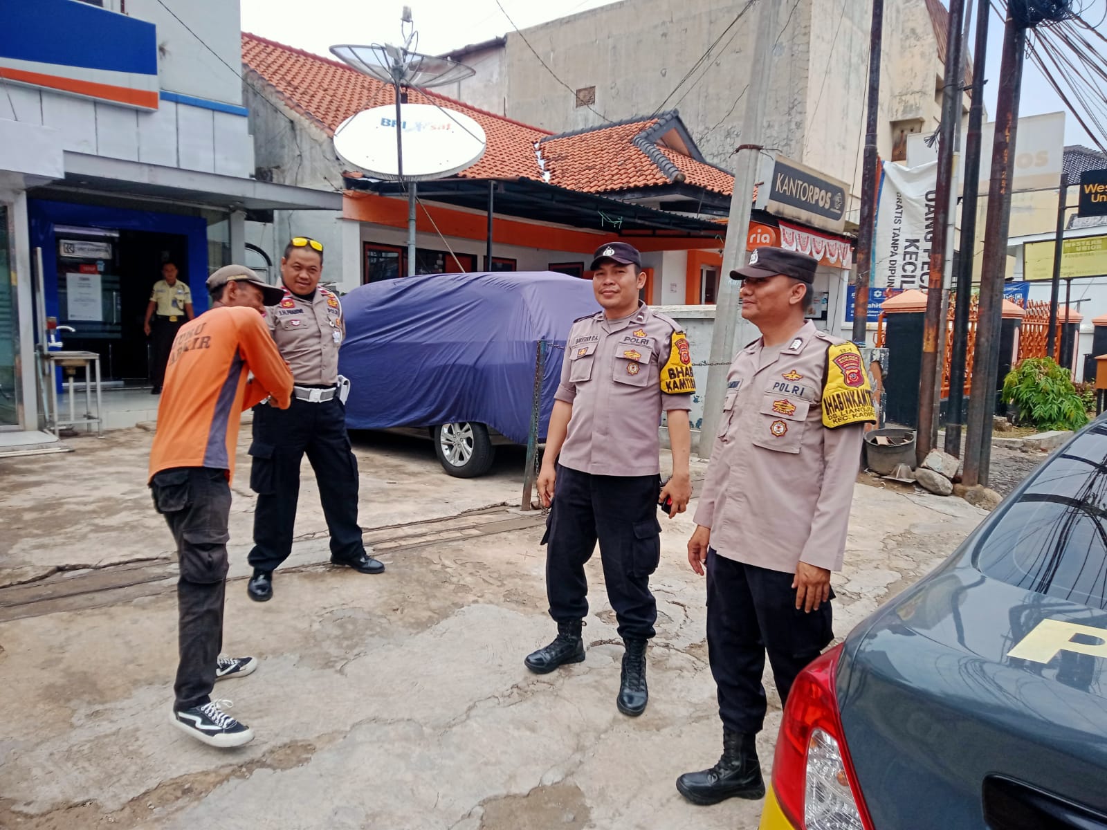 Personel Polsek Kadipaten AIPDA Bachtiar Dwi A., AIPDA Johan Heru Prabowo, S.H. dan BRIPKA M. Atin Ramdhan, S.H., menyambangi juru parkir dan mengajak untuk selalu waspada pada saat berktifitas.