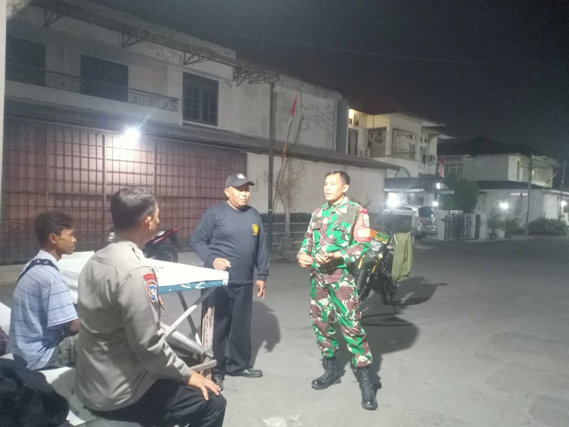 Bhabinkamtibmas Desa Tuk Aiptu Toto Suparta bersama Babinsa sambang patroli di RW 07 pembangunan barat Desa Tuk Kec.Kedawung Wilkum Polres Cirebon Kota jalin silaturahmi, himbau tingkatkan kewaspadaan dan kondusiitas lingkungan, Minggu malam (11/08/2024).