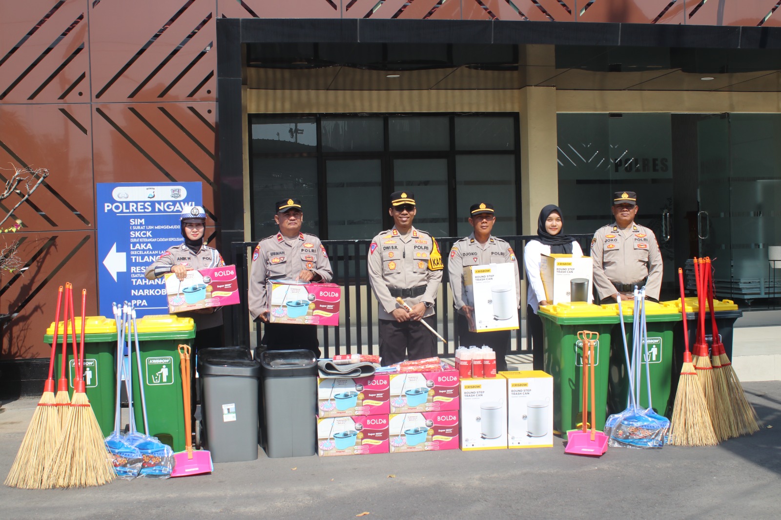 Untuk mendukung hal tersebut, maka Kapolres Ngawi AKBP Dwi Sumrahadi Rakhmanto, S.H., S.I.K., M.H., memberikan bantuan sarana prasarana berupa peralatan kebersihan kepada satuan fungsi yang memberikan pelayanan kepada warga masyarakat.