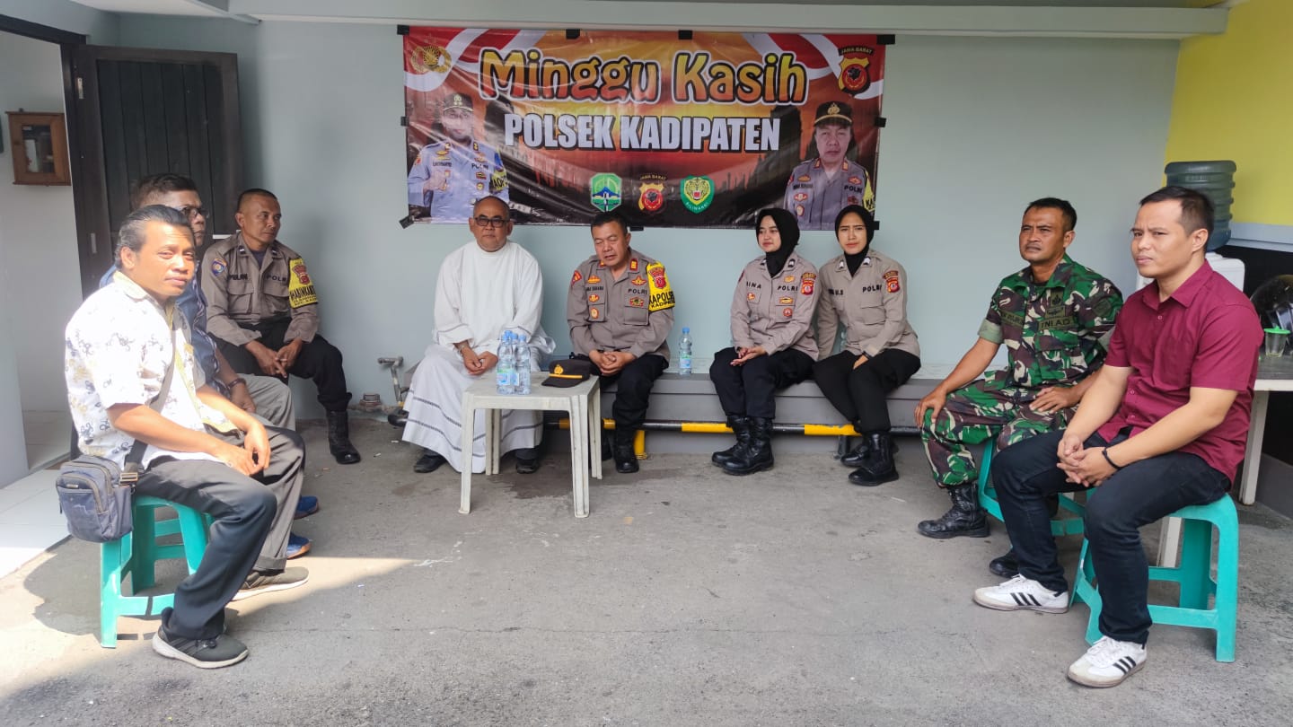 Majalengka – Dengan bertajuk tema ‘Minggu Kasih’ Polsek Kdp Polres Majalengka Polda Jabar yang dipimpin langsung oleh Kapolsek Kdp AKP Nana Suhana menyambangi warga di Gereja Kristus Bangkit Desa Kdp Kecamatan Kadipaten untuk mendengarkan keluh kesah masyarakat. Minggu (06/08/2023).