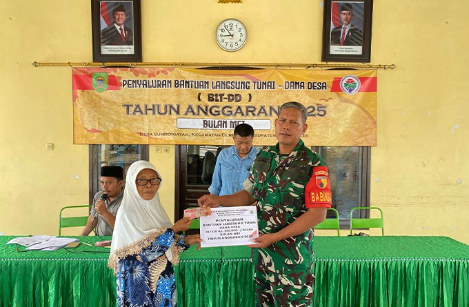 Seperti yang dilakukan oleh Babinsa Desa Sumbergayam, Pelda Sunarman, anggota Koramil 0806-03/Durenan, yang turun langsung mendampingi proses penyaluran BLT-DD kepada warga desa binaannya di Balai Desa Sumbergayam, Kecamatan Durenan, Kabupaten Trenggalek, Kamis (29/5/2025).