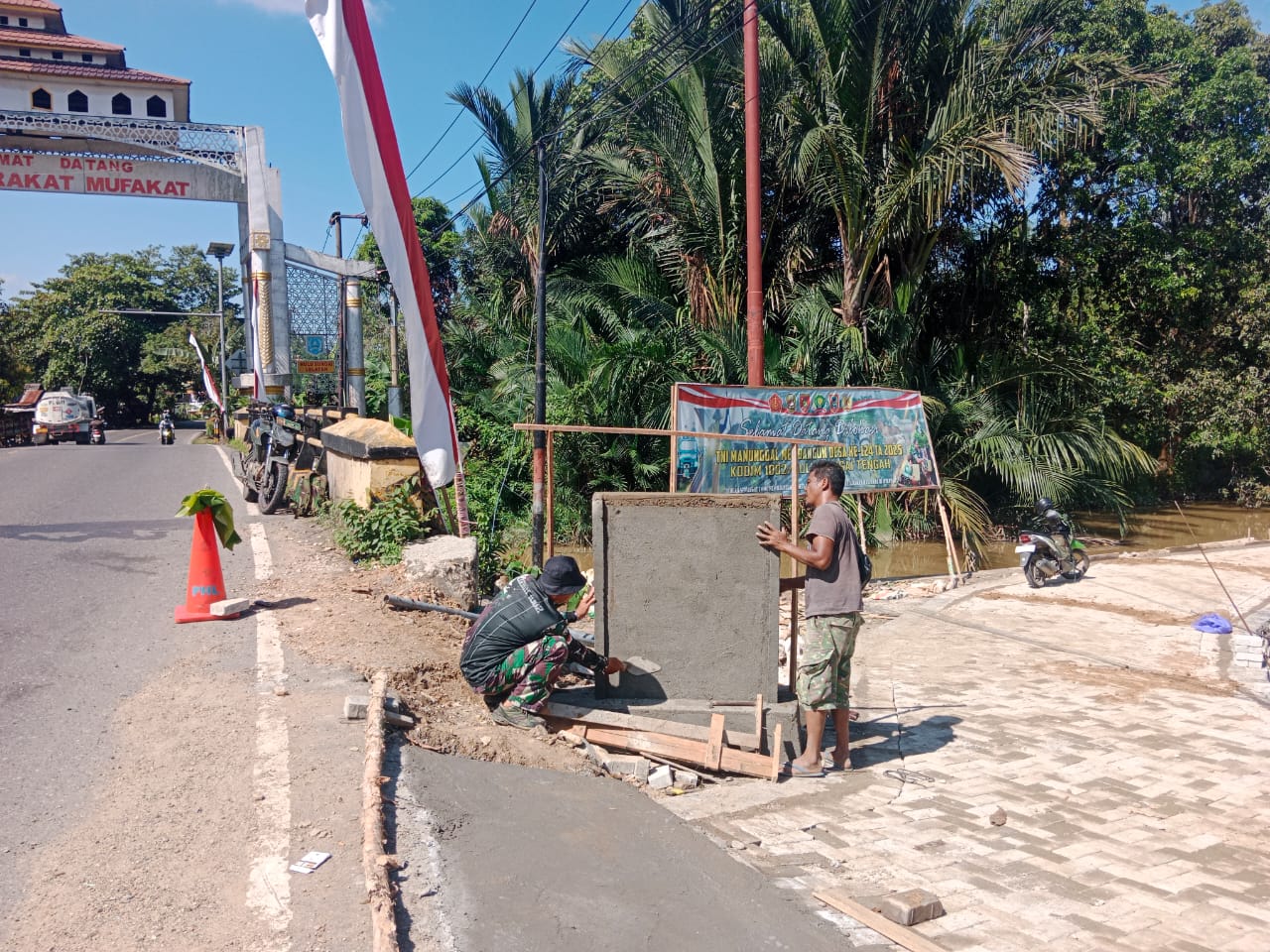 TNI Manunggal Membangun Desa (TMMD) ke-124 Kodim 1002/Hulu Sungai Tengah Dirikan Tugu Pertanda di Titik Nol Proyek Jalan 1030 Meter