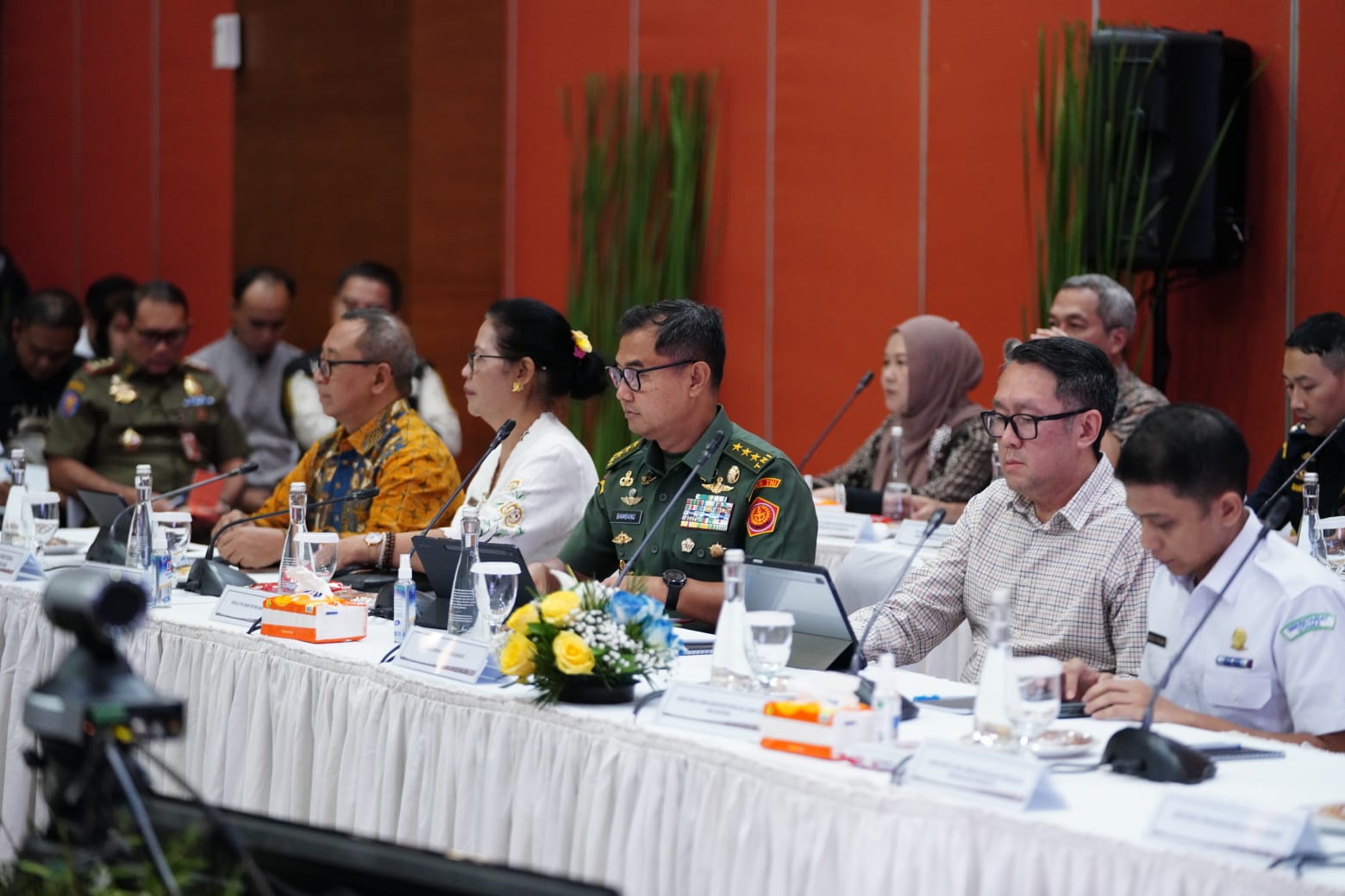 Kepala Staf Umum TNI (Kasum TNI) Letnan Jenderal TNI Bambang Ismawan, S.E., M.M. mewakili Panglima TNI didampingi oleh Wakil Asisten Operasi Panglima TNI (Waasops Panglima TNI) Marsma TNI Bonang Bayuaji G, S.E. menghadiri Rapat Koordinasi Panitia Nasional Persiapan KTT KE 43 ASEAN tahun 2023 dilaksanakan tertutup di Ruang Serbaguna Lantai 17 Gedung Utama Kementerian Pekerjaan Umum dan Perumahan Rakyat (Kementerian PUPR) Jl. Pattimura No. 20. Kebayoran Baru Jakarta Selatan pada Selasa (15/8/2023).