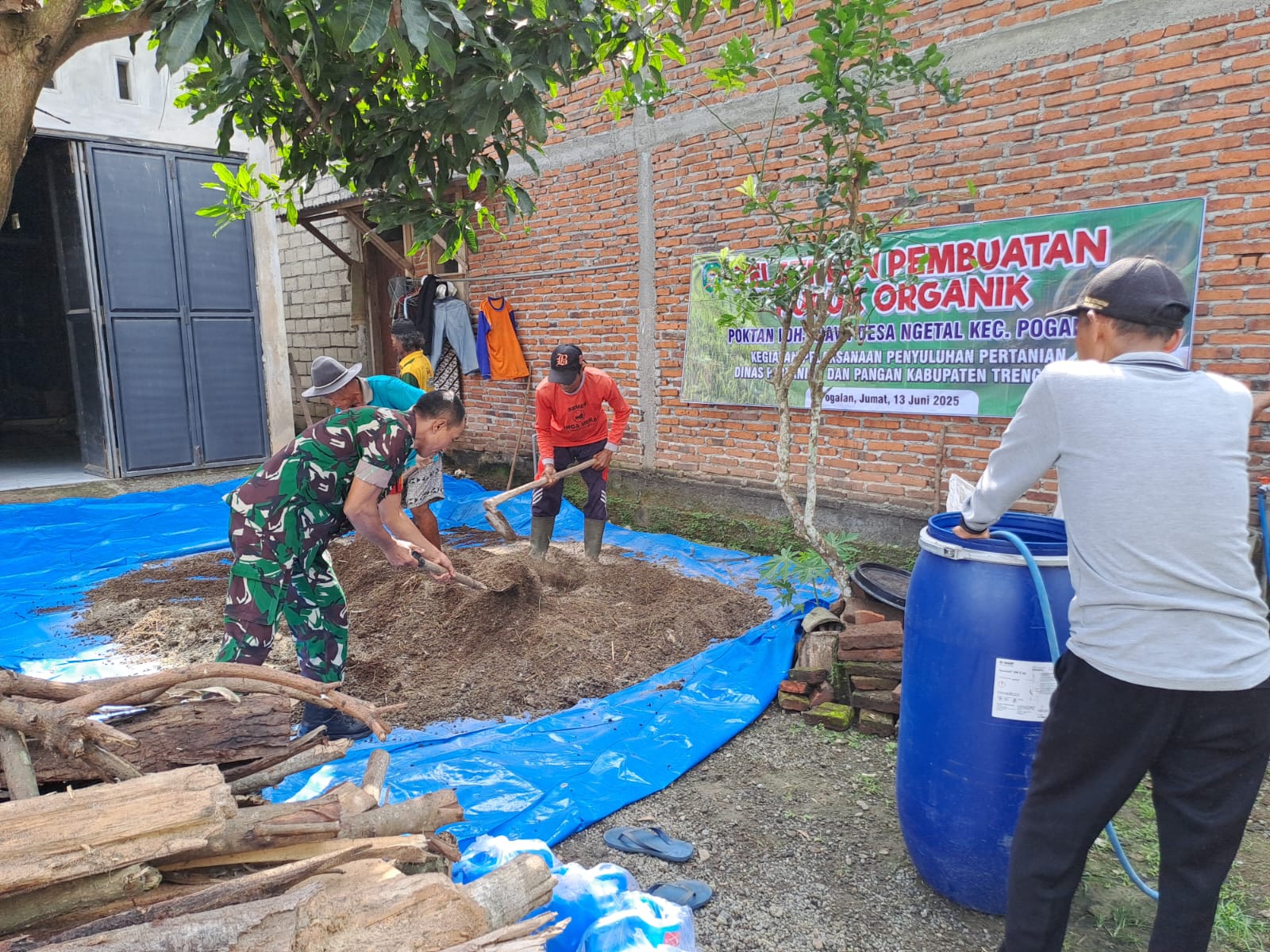 Trenggalek, Buserjatim.com – Upaya mendorong kemandirian petani dan pertanian ramah lingkungan terus dilakukan oleh TNI melalui peran aktif Babinsa di lapangan. Seperti yang dilakukan Babinsa Desa Ngetal, Kecamatan Pogalan, Serda Agus Eriendi, anggota Koramil 0806-02/Pogalan. Ia bersinergi dengan Bhabinkamtibmas Aipda Sandi dan Dinas Pertanian dan Pangan Kabupaten Trenggalek dalam menggelar pelatihan pembuatan pupuk organik bagi Kelompok Tani (Poktan) Loh Jinawi, Jumat (13/6/2025).