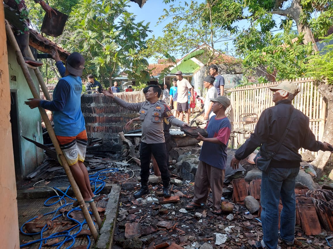 “ Tadi pagi juga kita langsung ke TKP, hari ini kita bantu korban bergotong royong dengan warga membersihkan puing-puing sisa kebakaran,” kata Kapolsek Sukahaji AKP Rudy Djunardi.