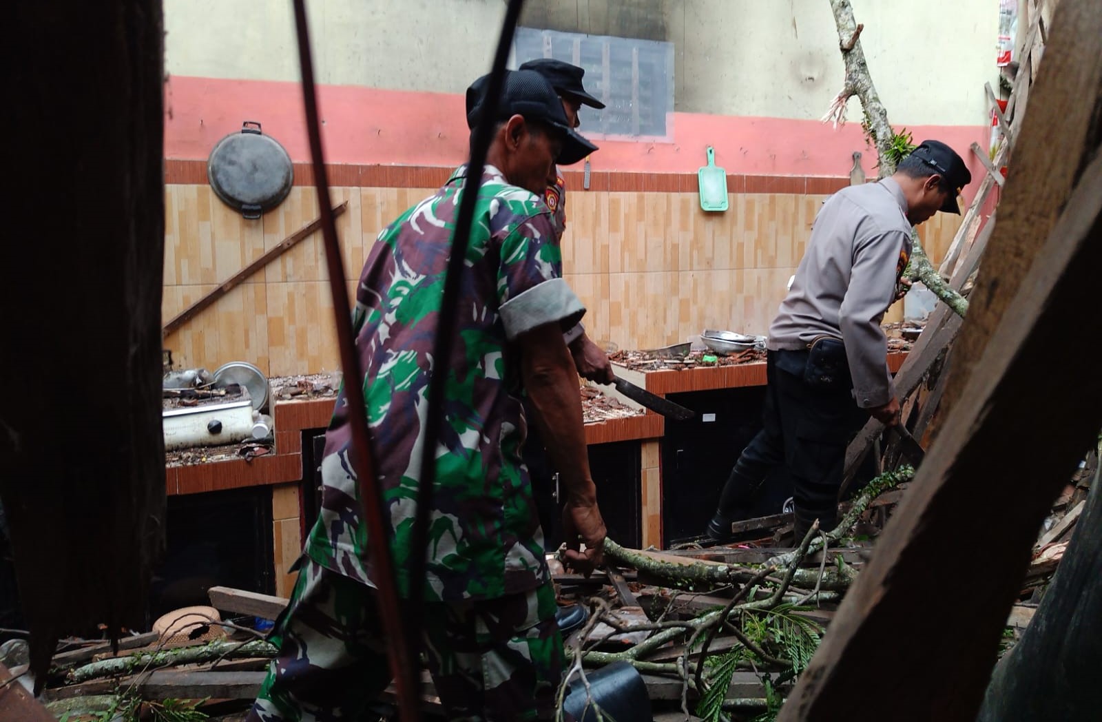 “Dampaknya cukup serius, atap dan perabotan dapur mengalami kerusakan parah dengan total kerugian sekitar 15 juta rupiah,” ujar Sertu Sumarji.