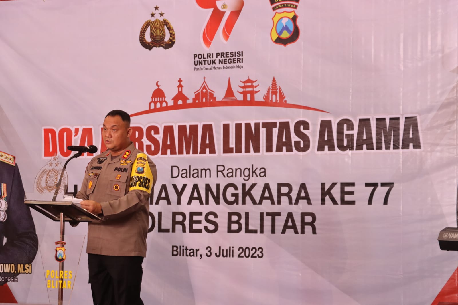 Acara tersebut dihadiri oleh ratusan anggota Polres Blitar, tokoh masyarakat, perwakilan agama, serta para tamu undangan lainnya. Keberagaman agama yang ada di Indonesia tampak terwakili dengan hadirnya tokoh agama dari berbagai agama seperti Islam, Kristen, Katolik, Hindu, Budha.