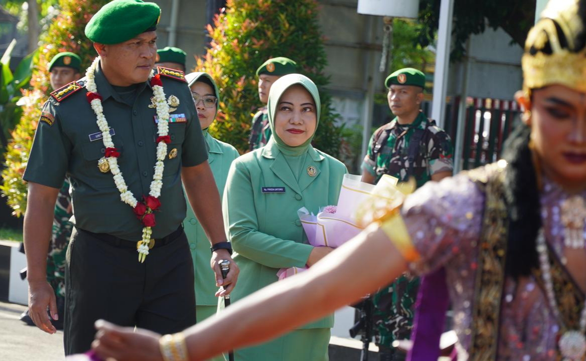 Tarian cucuk lampah pun mengiringi setiap langkah Kolonel Arm Untoro Hariyanto yang didampingi Ketua Persit KCK Koorcab Rem 081 PD V/Brawijaya, Ny. Frieda Untoro.