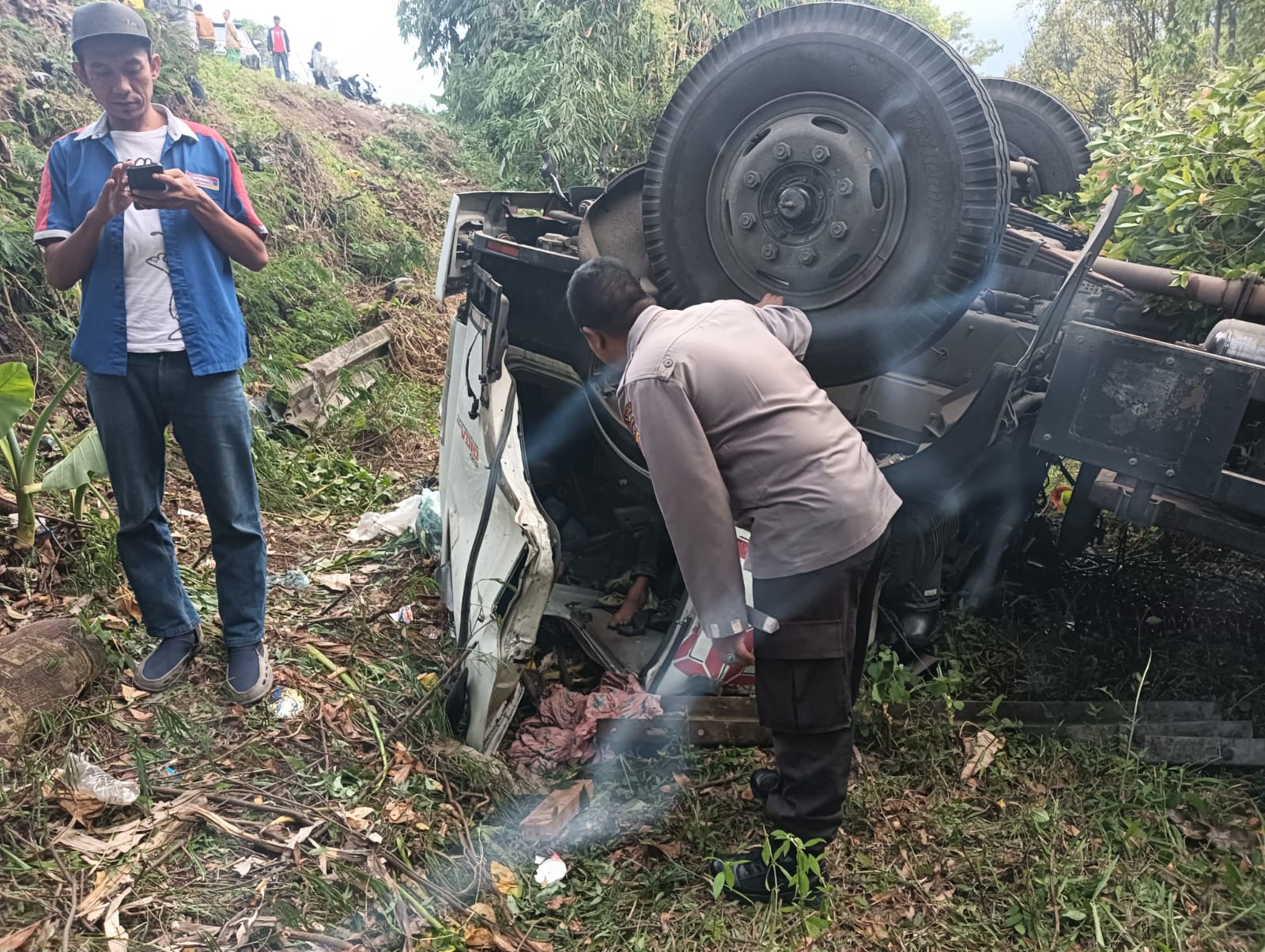 “Kemungkinan gagal rem dengan kondisi beban berat, hilang kendali dan masuk jurang sekitar 15 meter,” jelasnya
