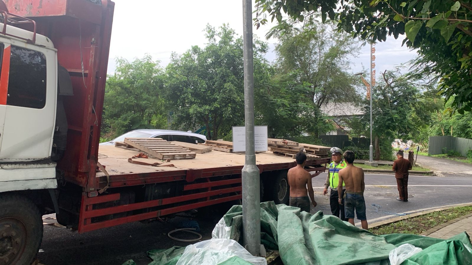Karena ukuran truk yang besar dan panjang, serta kondisi jalan yang hanya memiliki dua lajur, situasi ini menyebabkan arus lalu lintas tersendat. Untuk mengatasi kemacetan, petugas dari Polsek Kuta Selatan segera turun tangan dan memberlakukan sistem buka-tutup di lokasi kejadian agar kendaraan lain tetap dapat melintas.
