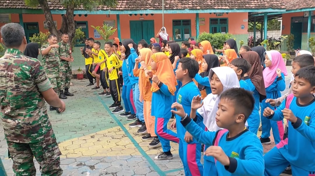 Tumbuhkan Nasionalisme Anggota Koramil 0804/08 Barat Berikan Wasbang Dan Pelatihan PBB Kepada Sekolah Dasar