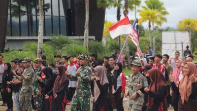 Setelah pelaksanaan kerja bakti selesai, kegiatan dilanjutkan dengan senam bersama di halaman tuguh Garuda PLBN Nanga Badau. Siswa-siswi SMK 1 Badau sangat senang melaksanakan seluruh rangkaian kegiatan tersebut karena diselingi dengan bercanda dan tertawa bersama sehingga menumbuhkan kedekatan dengan Prajurit TNI.