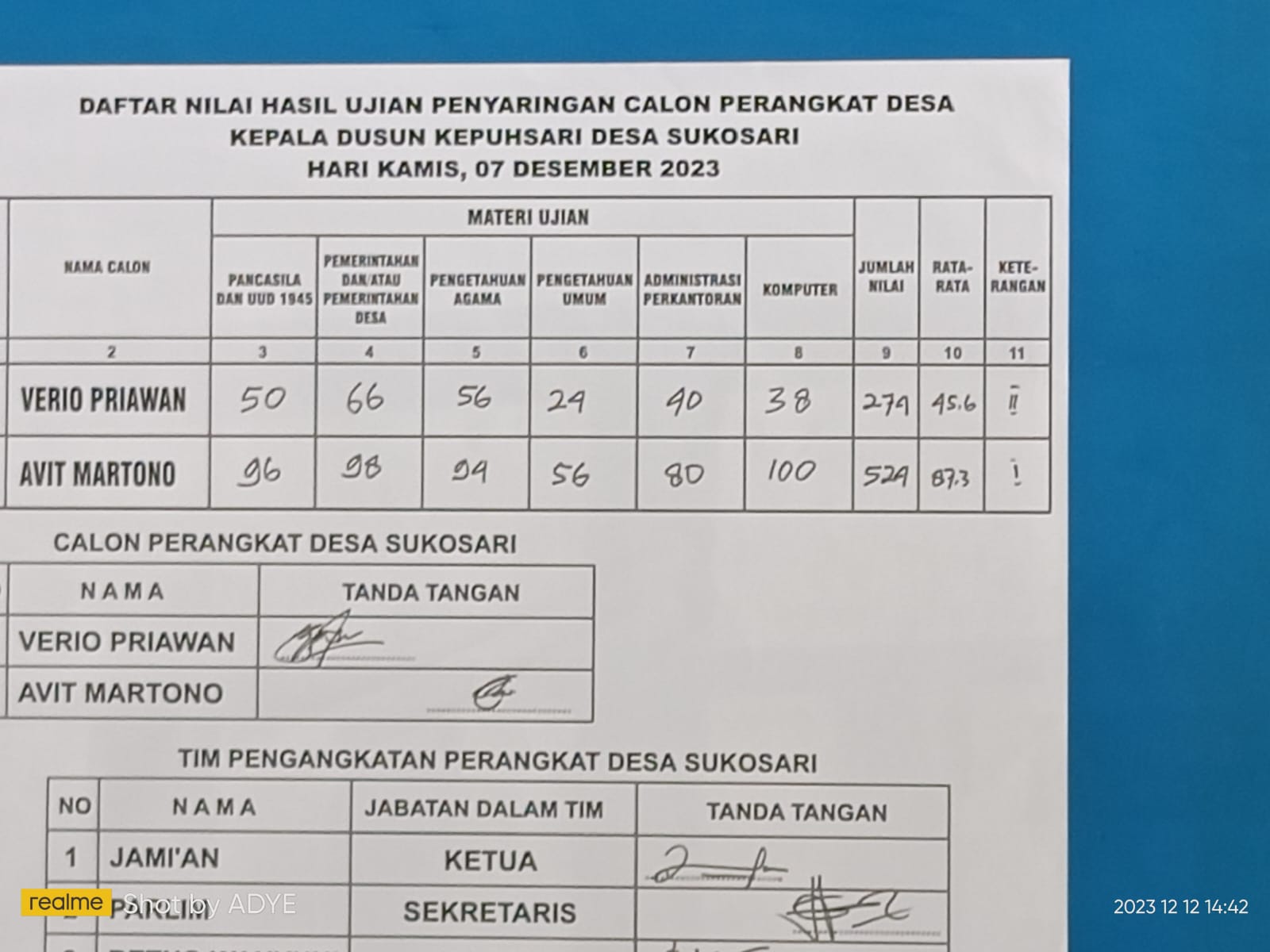 Melihat hasil nilai ujian yang diperoleh dari ke-2 bakal calon tersebut maka dinyatakan lanjut untuk mengikuti tahap berikutnya, rekomendasi untuk dilakukan pelantikan adalah atas nama Avit Martono dengan jumlah nilai tertinggi 524 dan nilai rata rata 87,3.