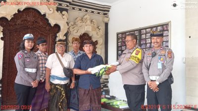 “Kegiatan ini bertujuan untuk menjalin kerjasama/kolaborasi serta sinergitas antara Polri dengan Pecalang dalam rangka pelaksanaan tugas-tugas pengamanan dan pelayanan kepada masyarakat yang ada dimasing masing desa adat sekaligus memberikan pengetahuan tentang dasar-dasar tugas pecalang dalam membantu kegiatan Polri.” Ungkap PS. Kanit Kamsel Aiptu I Putu Ariasa, SH. disela-sela menyerahkan bantuan sarana kontak berupa Rompi lalu lintas, Senter lalu lintas, Tali pluit dan Pluit.