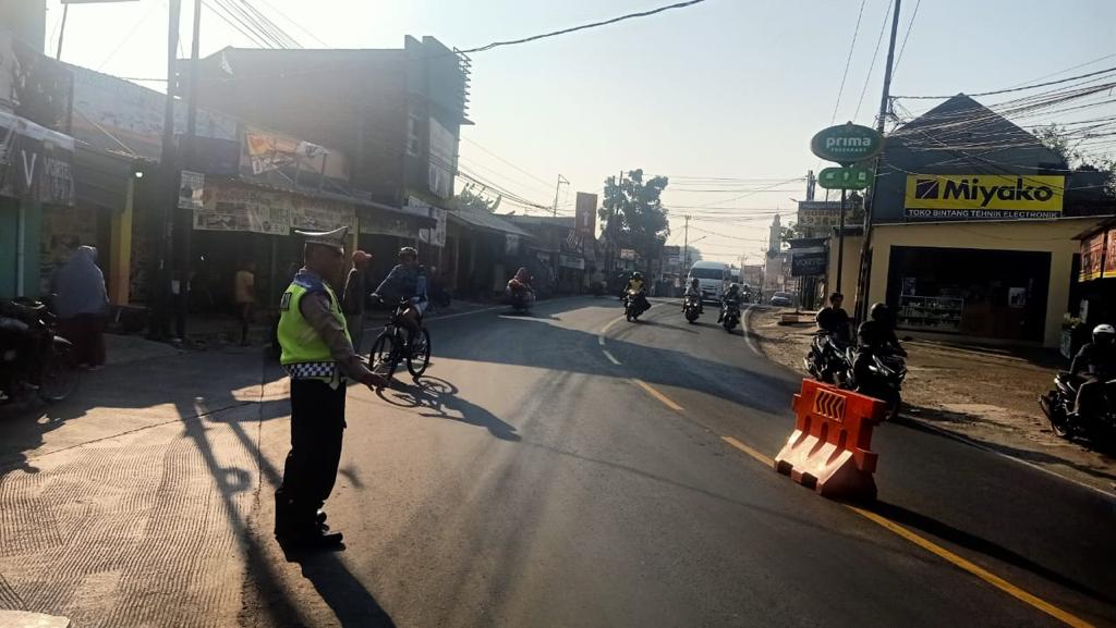 Unit Lalu Lintas Polsek Ciampea Polres Bogor Berikan Rasa Aman dengan gatur lalin.