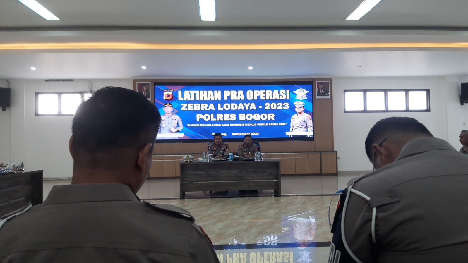 Citeureup – Polres Bogor, Kanit Patroli dan Kanit Lantas Citeureup Polsek Citeureup Polres Bogor Polda Jabar telah melaksanakan tugas Pelayanan Publik mengikuti arahan Pimpinan dan Pengarahan dimulainya Operasi Zebra 2023 di Aula Polres Bogor, pada hari Senin (04/09/2023).