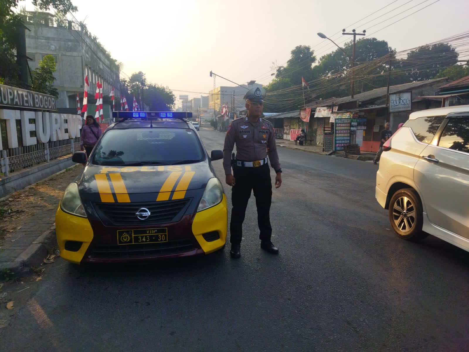Citeureup – Polres Bogor, Panit Lantas Polsek Citeureup Polres Bogor Polda Jabar Bripka M. Bagus beserta Anggota telah melaksanakan tugas Pelayanan Publik melalui Pengaturan Lalu Lintas, membantu warga yang ingin menyebrang, monitoring pengguna sepeda motor yang melawan arus, merekayasa jalur apabila diperlukan untuk mengurai kemacetan, pada hari Kamis (24/08/2023).