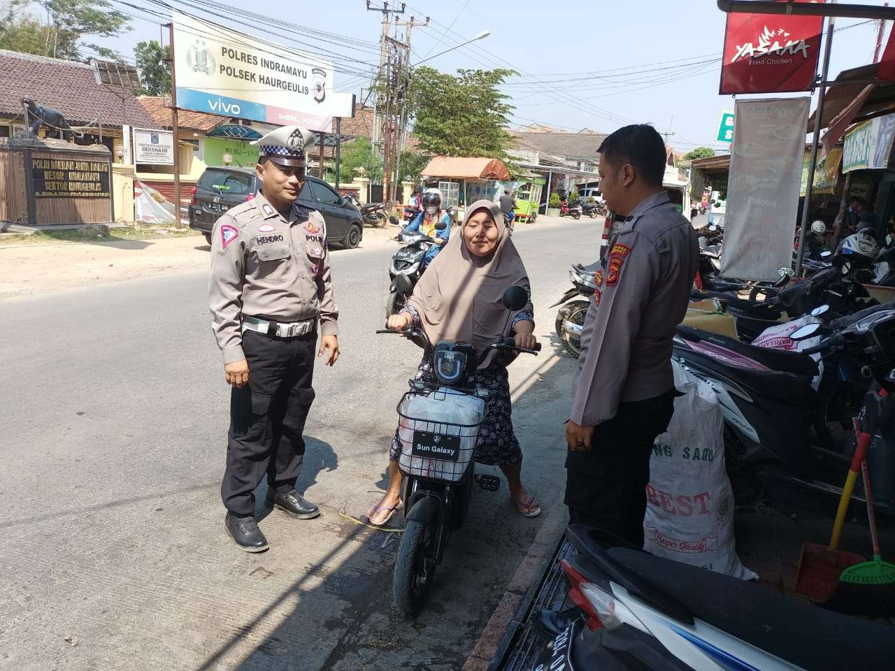 Indramayu, — Unit Lalu Lintas Polsek Haurgeulis jajaran Polres Indramayu Polda Jabar Berikan Teguran Secara Humanis Kepada Pelanggar Lalu lintas Dalam Rangka OPS Zebra Lodaya 2023, Rabu (06/09/2023).