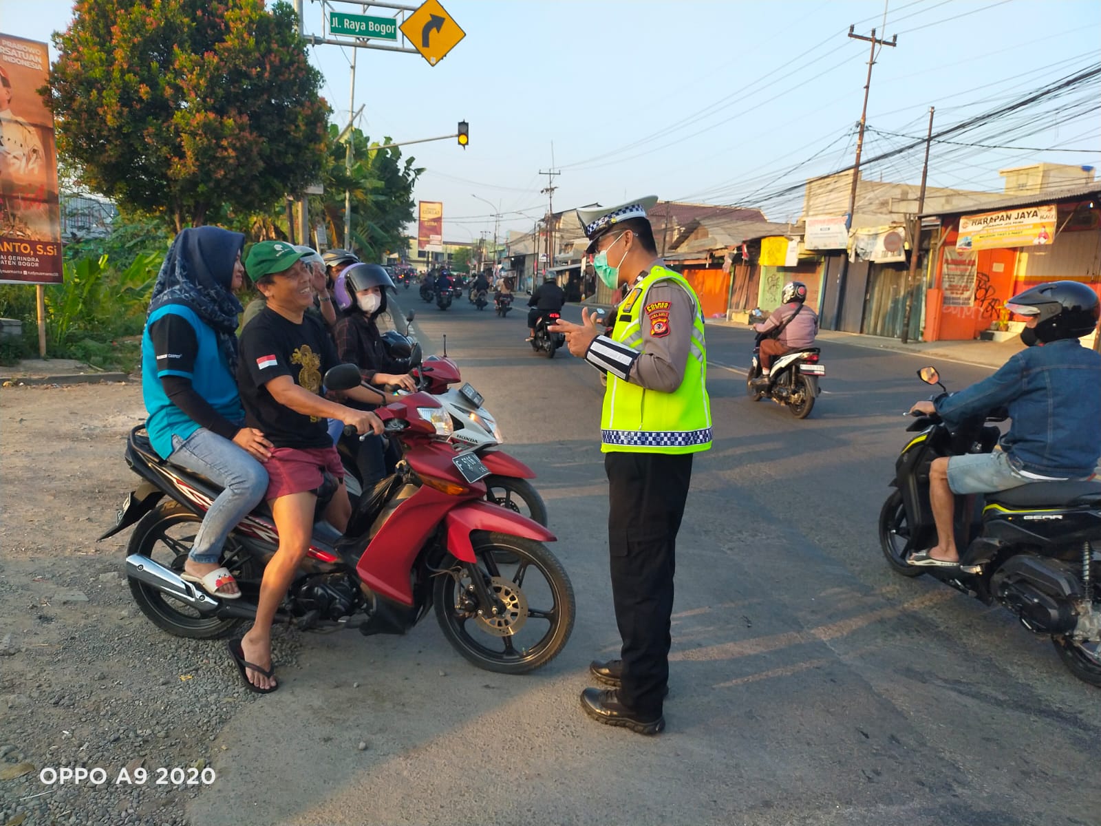 Dalam kegiatan saat pengaturan lalu lintas tersebut, AIPDA Riki rustiana SH unit lantas Polsek Sukaraja Polres Bogor melaksanakan teguran kepada pengendara motor sekaligus menyampaikan pesan selalu taati aturan lalu lintas salah satunya pake helm saat berkendaraan motor tuk keselamatan bermotor.