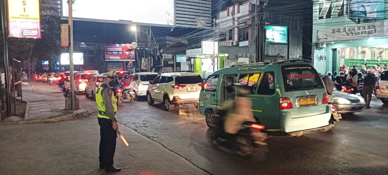 POLRES CIREBON KOTA,-Mengantisipasi terjadi kemacetan kepadatan arus lalulintas didalam Kota, anggota Pos Gatur Gunung Sari Polsek Utbar, Polres Cirebon Kota (Ciko) melakukan pengaturan arus lalulintas di Jalan Tuparev Wilkum Polres Cirebon Kota, Minggu (15/10/2023) malam.