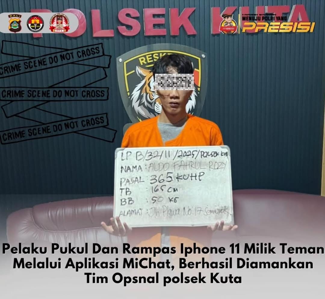 BADUNG,BUSERJATIM.COM , 28 Februari 2025 – Unit Reskrim Polsek Kuta berhasil mengamankan seorang pria bernama Aldo Fahrul Rozy Muhammad Wahid (25), asal Jakarta Selatan, yang diduga melakukan aksi pencurian dengan kekerasan terhadap seorang perempuan berinisial SA (19), asal Karawang, Kabupaten Bekasi, Jawa Barat.