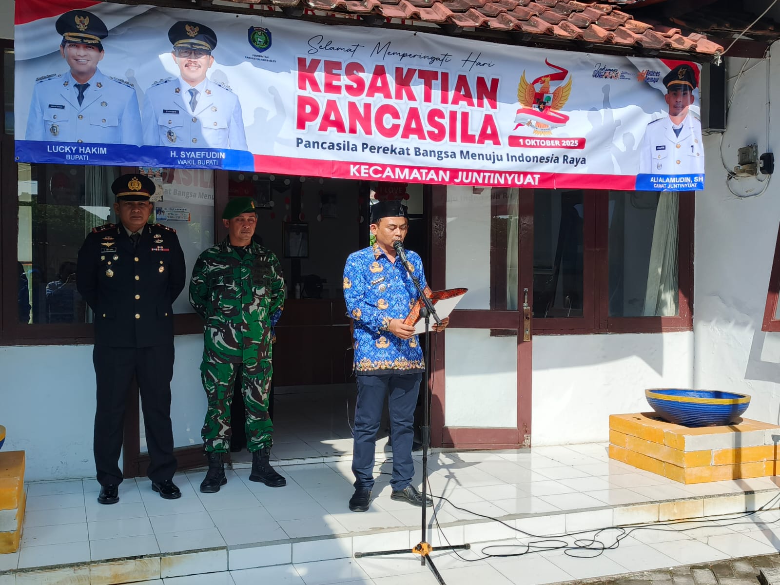 Indramayu – Upacara peringatan Hari Kesaktian Pancasila tingkat Kecamatan Juntinyuat digelar di halaman Kantor Kecamatan Juntinyuat, Kabupaten Indramayu, Rabu (1/10/2025).
