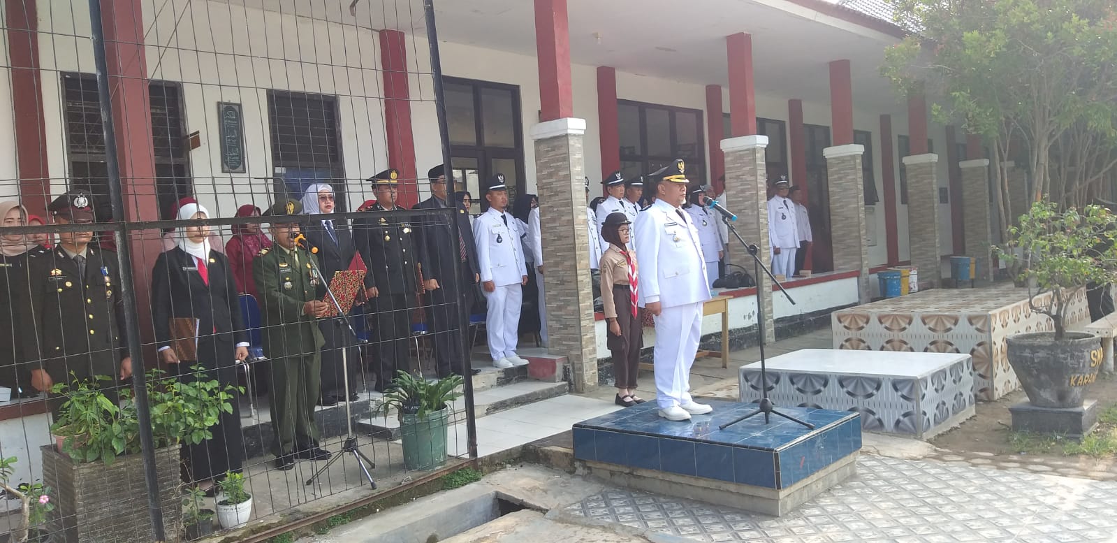 Bertindak sebagai komandan upacara Sertu Budi Hartono, dengan perwira upacara Aipda Jeklin Samuarai. Inspektur upacara dijabat Camat Karangampel Roshadian Purnama, S.H.
