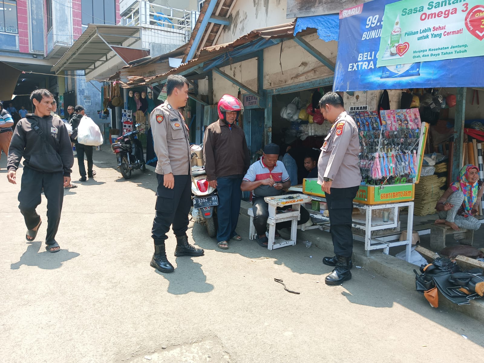 Majalengka – Bentuk upaya menjalin komunikasi dengan masyarakat, Ps. Panit Samapta l Polsek Cikijing Polres Majalengka Polda Jabar Aipda Eman Subagja dan Bhabinkamtibmas Bripka Harry melakukan patroli diseputaran Pasar Cikijing dan menyambangi warga guna menyampaikan himbauan Kamtibmas, Jum’at (25/08/2023).