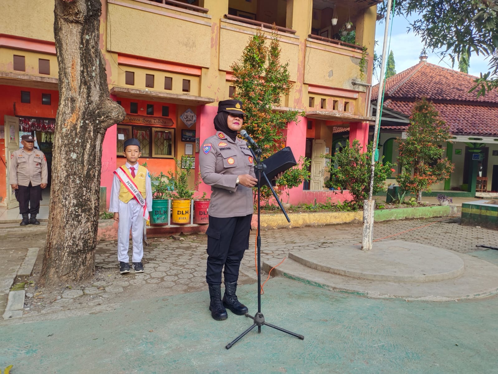 Indramayu,- Kasat Binmas Polres Indramayu, jajaran Polda Jabar, AKP Suprihati Setyaningsih, menjadi Pembina Upacara Bendera pada acara pelajar sekolah di SDN Unggulan Indramayu, Kecamatan Indramayu. Senin (5/2/2024)