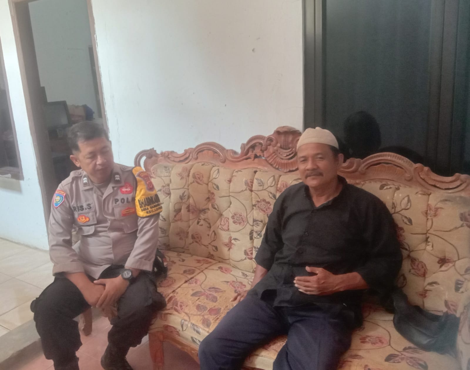 Dalam sambang tersebut, AIPTU Aris Santosa berdiskusi dengan Warjo mengenai peran penting tokoh agama dalam menjaga situasi kamtibmas.