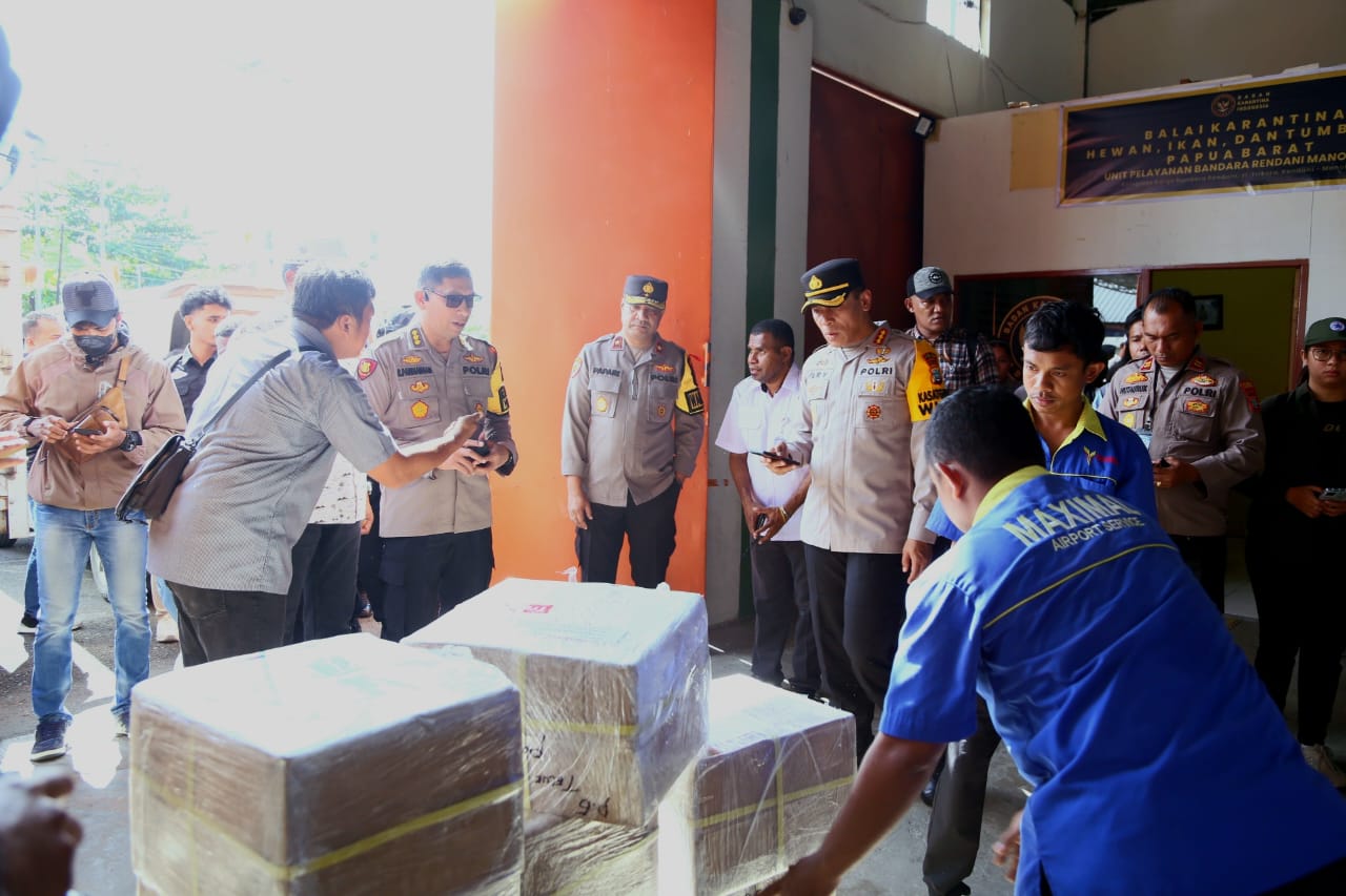 “Hari ini surat suara dikirim dari Jakarta, untuk kabupaten Fakfak dan Kaimana dikirim melalui Kota Sorong, untuk 5 kabupaten lain datang di Bandara Rendani langsung digeser ke masing-masing kabupaten, sedangkan surat suara PSUnya nanti disimpan di KPU Provinsi” ujar Kombes Pol. Robertus A. Pandiangan, S.I.K.,M.H.