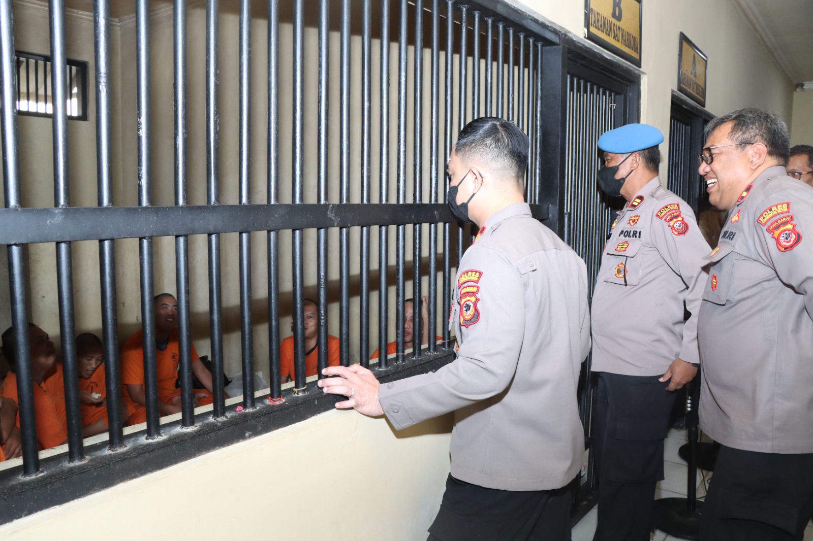 “Kebersihan ruang tahanan itu penting agar tahanan sehat, bila ruang tahanan ada yang kurang baik agar segera dilaporkan,” ucap Wakapolres kepada anggota jaga.