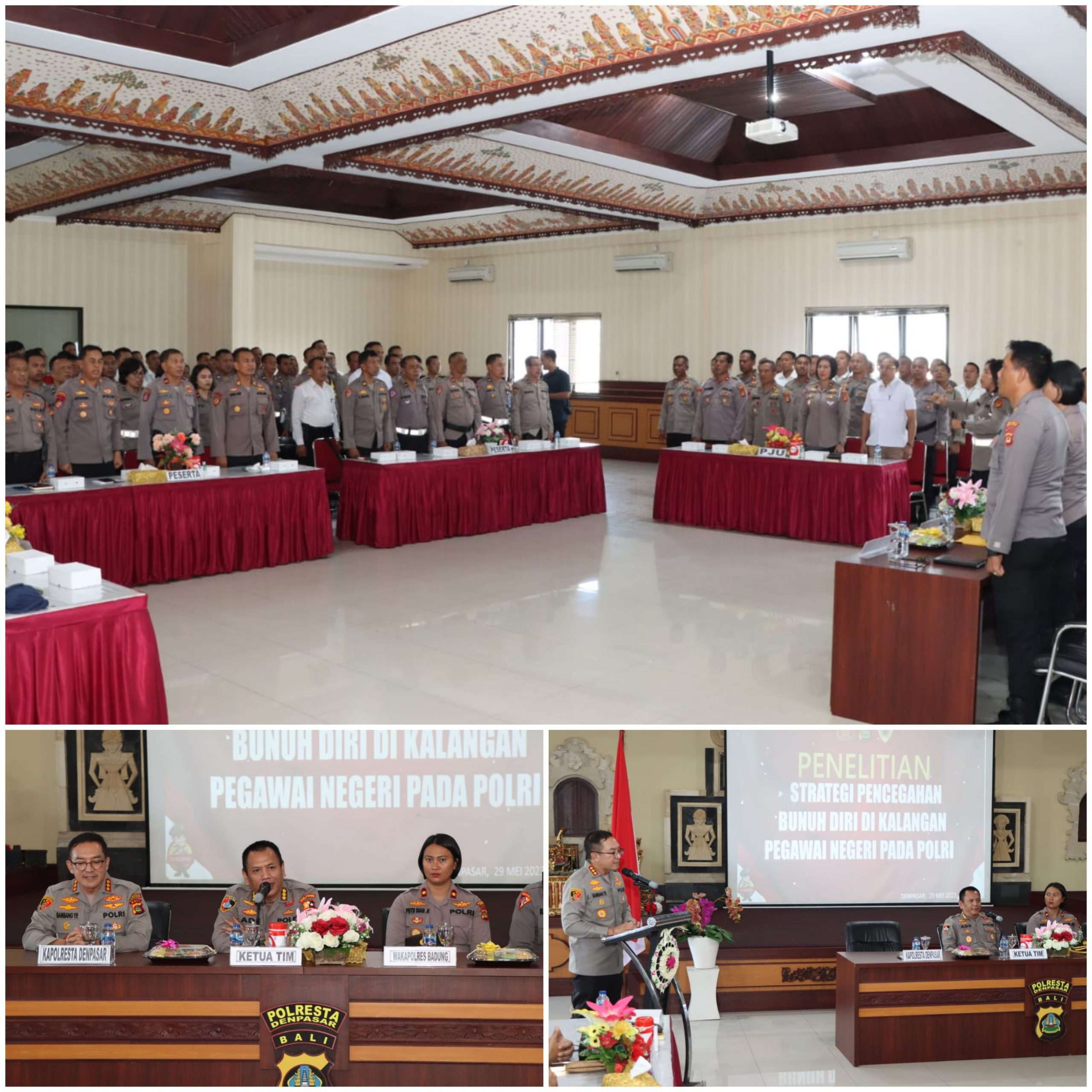 Wakil Kepala Kepolisian Resor Badung Kompol Putu Diah Kurniawandari, SH, SIK, MH mengikuti kegiatan penelitian strategi pencegahan bunuh diri di kalangan pegawai pada Polri di Mapolresta Denpasar pada hari Senin, (29/5/2023) siang 13.20 Wita.