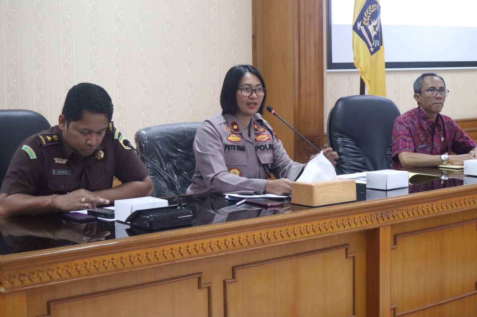 Wakil Kepala Kepolisian Resor Badung Kompol Putu Diah Kurniawandari, S.H.,S.I.K.,M.H pimpin pelaksanaan rapat Optimalisasi Pelaksanaan Tugas UPP (Unit Pemberantasan Pungli) Kabupaten Badung periode bulan Agustus tahun 2023. di Ruang Rapat Riset dan Inovasi Puspem Kab. Badung, Kelurahan Sempidi Kecamatan Mengwi Kabupaten Badung, Bali. Selasa (29/08) siang pukul 10.30 Wita.